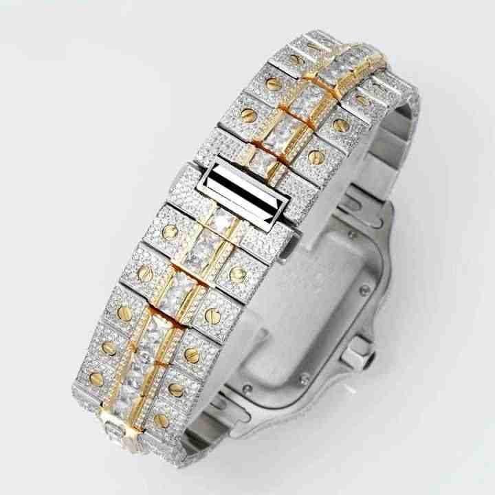 นาฬิกาข้อมือผู้ชายคุณภาพสูง ดีไซน์ฮิปฮอป สายสแตนเลส ประดับเพชรแล็บโกรว์ VVS ความใสระดับพรีเมียม หน้าปัดกระจกอัจฉริยะ ดีไซน์โดดเด่นไม่ซ้ำใคร