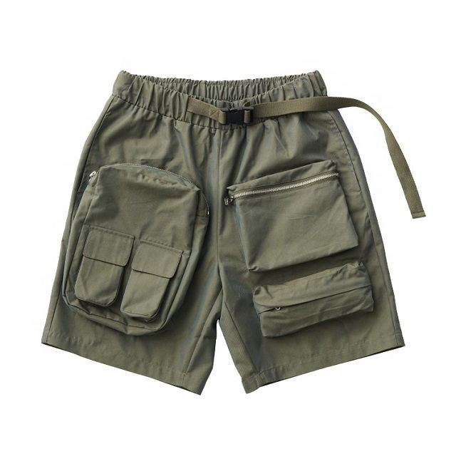กางเกงขาสั้นคาร์โก้ผู้ชายคุณภาพสูงสำหรับฤดูร้อน ระบายอากาศได้ดี ผ้าถักแบบกลางลำตัว แห้งเร็ว รับผลิตตามแบบ OEM เอวยางยืด ไซส์ใหญ่พิเศษ
