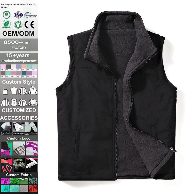 เสื้อแจ็คเก็ตซอฟต์เชลล์คุณภาพสูงสำหรับผู้ชาย เสื้อกั๊กผ้าฟลีซระบายอากาศ สไตล์วินเทจ โพลีเอสเตอร์ กันลม สีดำ