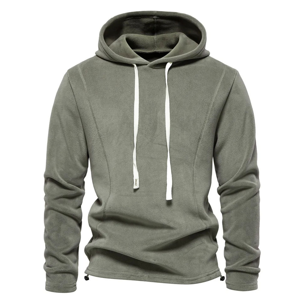 เสื้อฮู้ดสวมหัวผ้าฟลีซอุ่นหนาของผู้ชายเสื้อสเวตเชิ้ตสีพื้นลำลองดีไซน์ขนาดใหญ่สำหรับผู้ชาย