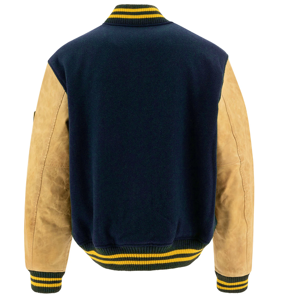 เสื้อแจ็กเก็ตทีมตัวแทนของผู้ชายเสื้อแจ็กเก็ตแบบปะติดสำหรับฤดูหนาวสไตล์สตรีทแบบลำลองมีกระดุม