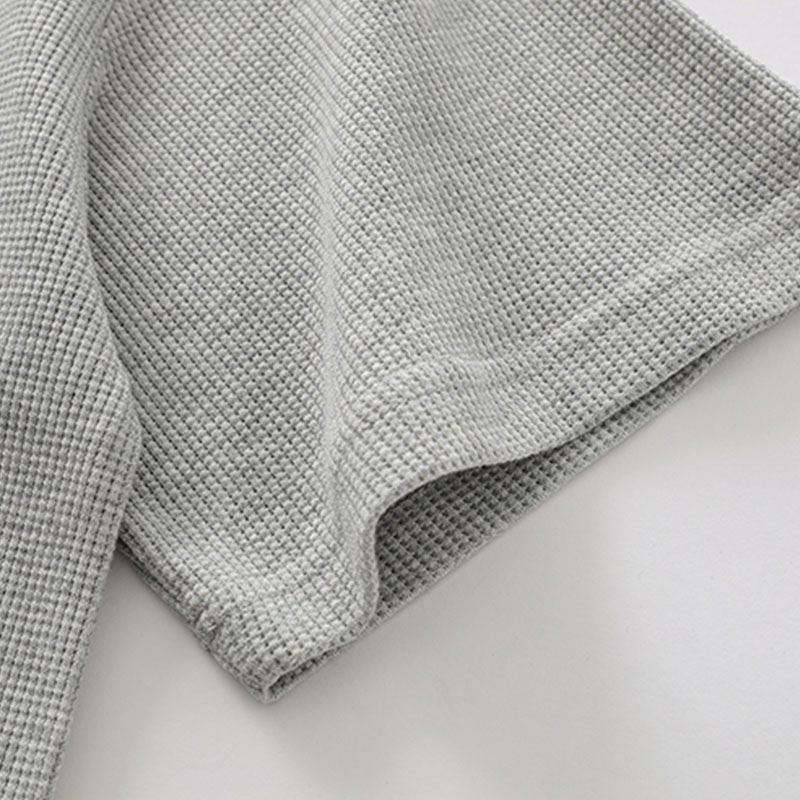 เสื้อยืดถักวาฟเฟิลสำหรับผู้ชายคอกลมผ้าฝ้ายธรรมดาโอเวอร์ไซส์100%