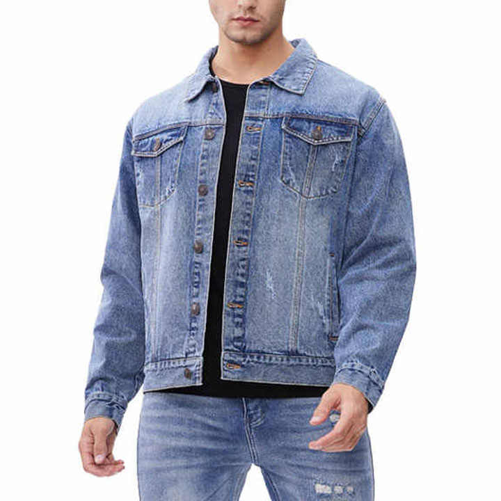 แจ็กเก็ตยีนส์สำหรับผู้ชายบุด้วยผ้าคอตตอน50ผ้าฝ้ายทอเสื้อกันลมสำหรับฤดูหนาว