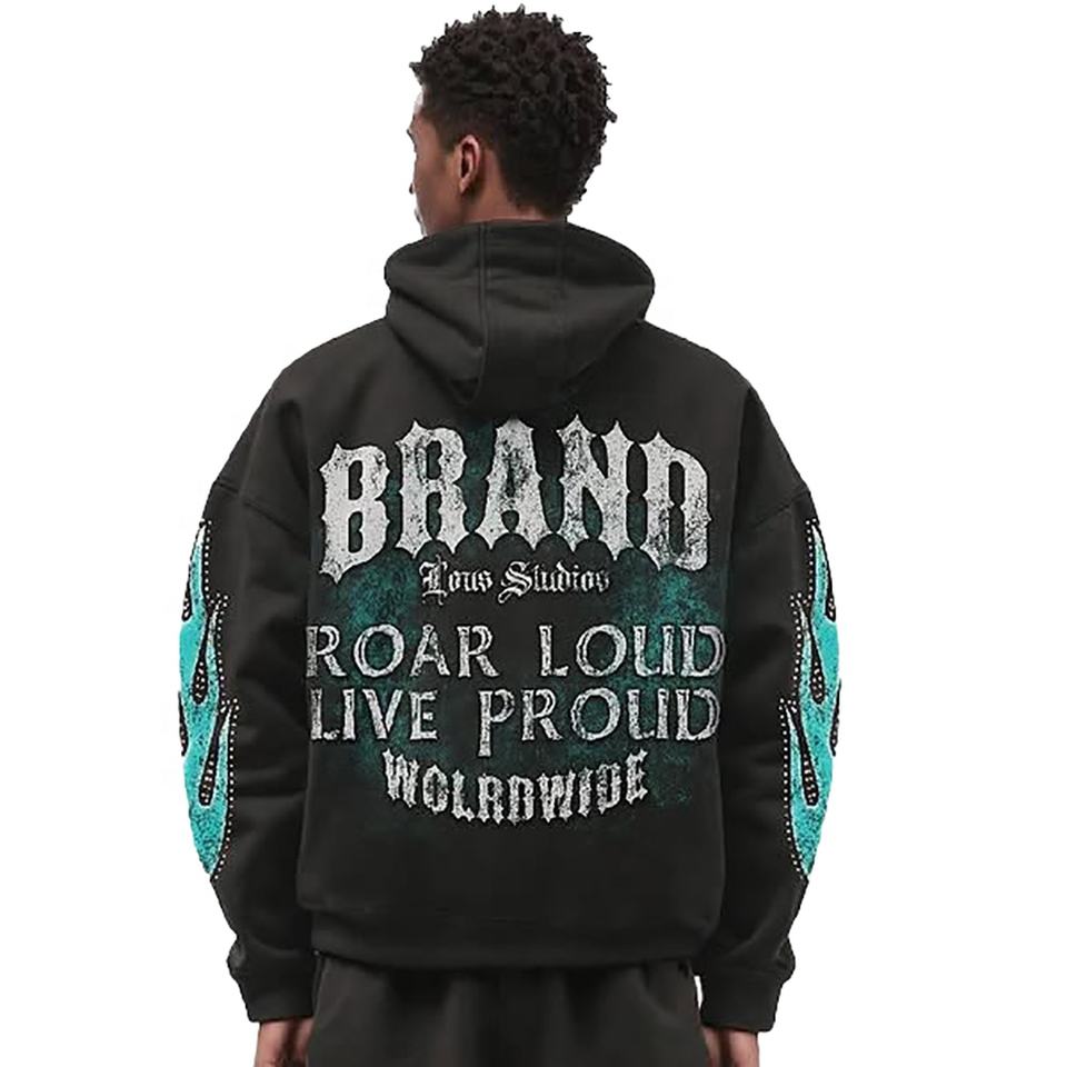 ชุดวอร์มฤดูหนาวคุณภาพสูงของผู้ชายกางเกงวอร์มมีฮู้ดโอเวอร์ไซส์แบบสวมหัวพิมพ์ลายโลโก้แบบกำหนดเอง