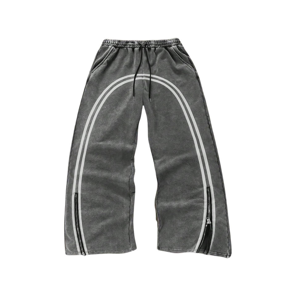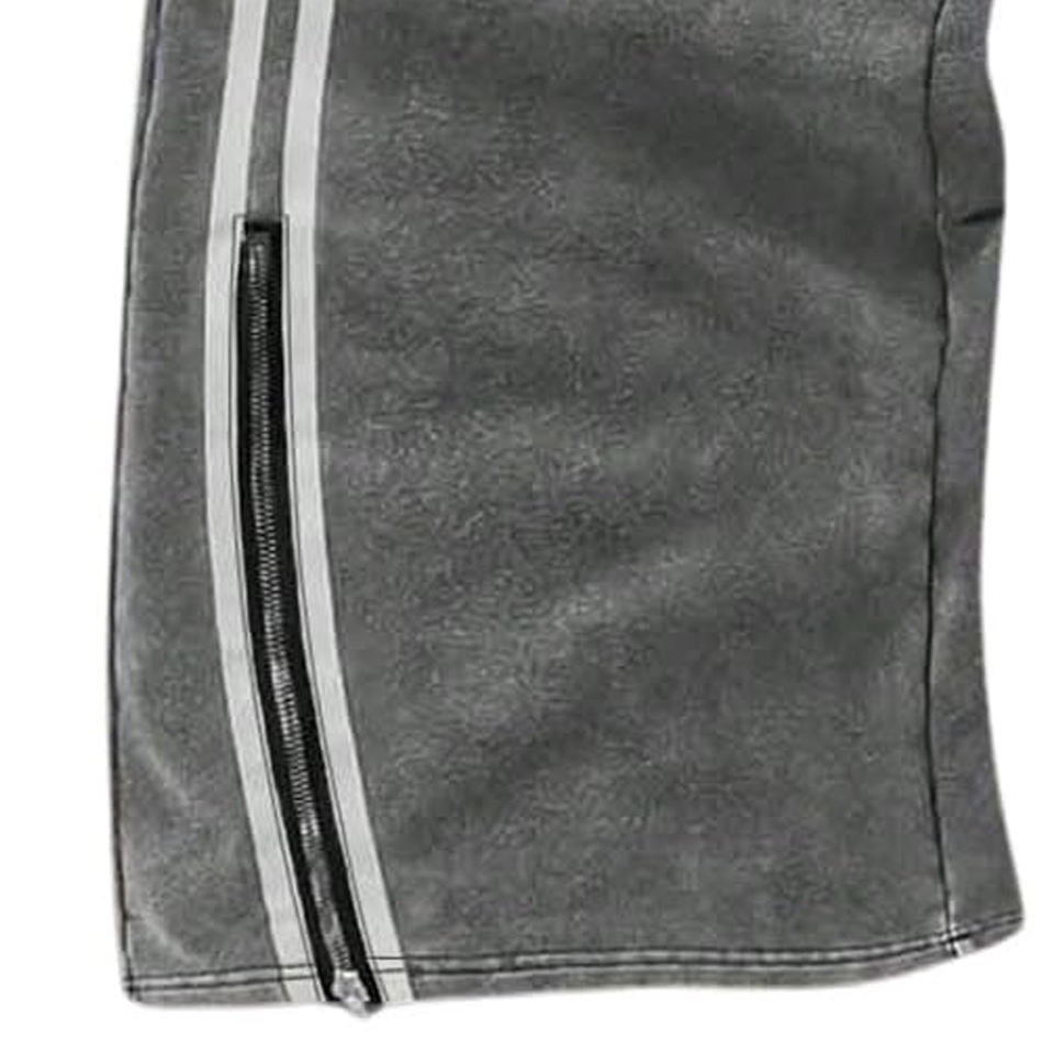 กางเกงวอร์มขายาวสำหรับผู้ชายกางเกงวิ่งขายาวพิมพ์ลายกรดมีซิป