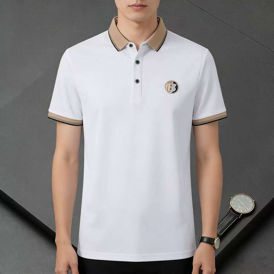 เสื้อยืดกอล์ฟผู้ชายคุณภาพสูง แฟชั่นเรียบง่าย ผ้าถักโพลีเอสเตอร์/คอตตอน ปักโลโก้ แขนสั้น