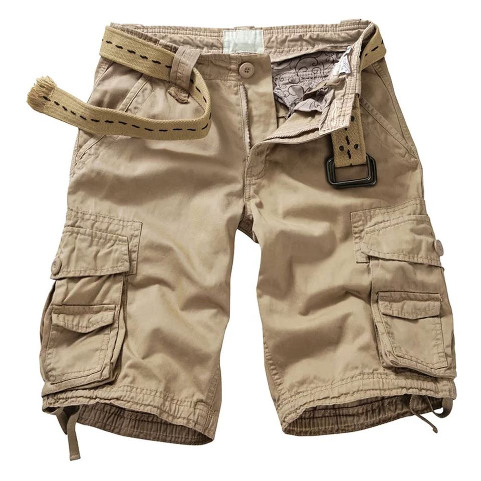 กางเกงขาสั้นผ้าแคนวาสสำหรับผู้ชายทรงสูงระบายอากาศได้ดีมีกระเป๋าหลายใบแบบมีซิปปิดสีทึบเป็นมิตรกับสิ่งแวดล้อมย้อมสี
