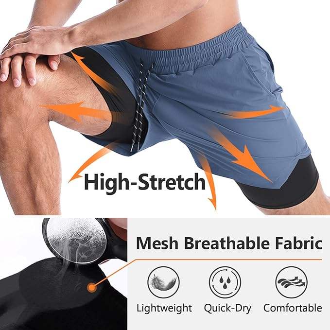 กางเกงขาสั้นออกกำลังกายผู้ชายสไตล์ลำลอง ลายเรียบ น้ำหนักเบา ระบายอากาศได้ดี ผลิตจากโพลีเอสเตอร์ตาข่าย เอวกลาง ยางยืด แห้งเร็ว