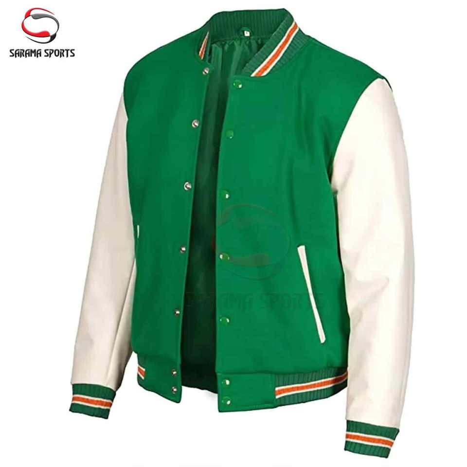 เสื้อแจ็คเก็ตเบสบอลสไตล์วาร์ซิตี้แฟชั่นไฮสตรีทสำหรับผู้ชาย แขนหนัง ปักแบรนด์ได้ตามสั่ง ราคาขายส่ง สำหรับฤดูหนาว