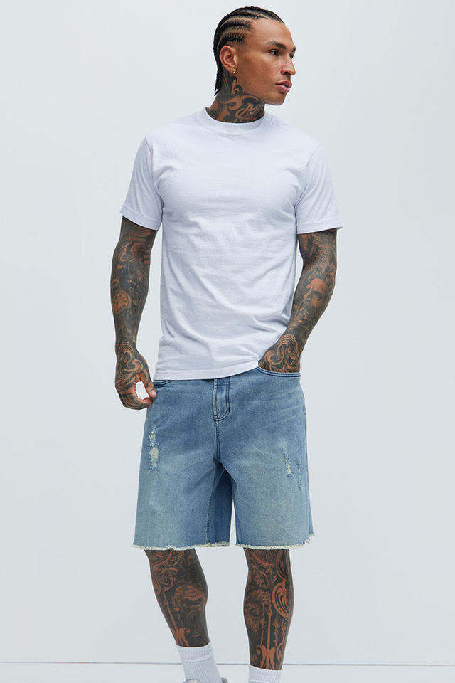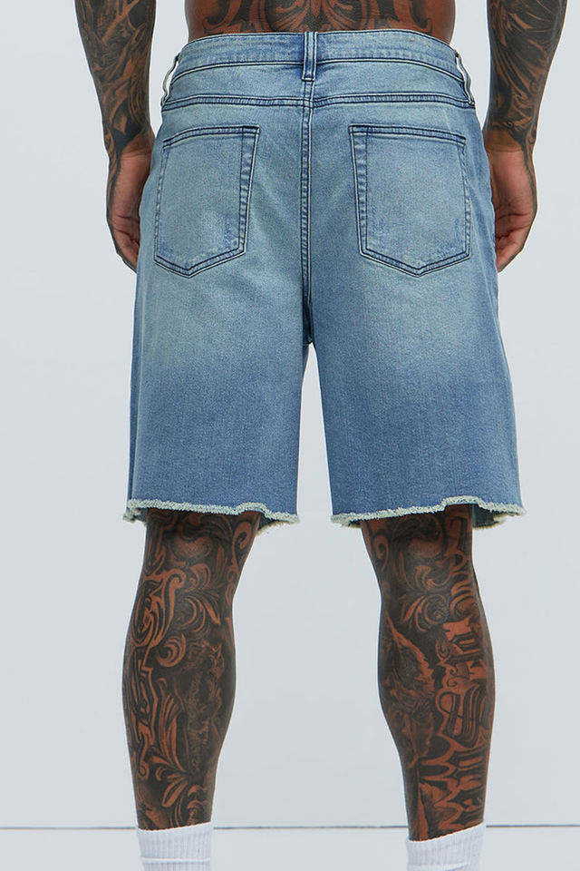 กางเกงขาสั้นผ้ายีนส์แบบลำลองสไตล์ไฮสตรีทสำหรับผู้ชายกางเกงขาสั้นผ้ายีนส์แฟชั่นแบบถักทรงเอไลน์ผ้าหนาทึบสำหรับฤดูร้อนซัก & สวมใส่