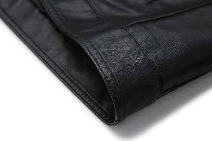 แจ็คเก็ตหนัง PU ทรงคลาสสิกสไตล์ไฮสตรีทสำหรับผู้ชาย เหมาะสำหรับขี่มอเตอร์ไซค์ สามารถสกรีนโลโก้ได้ แจ็คเก็ตคอตั้งสำหรับฤดูหนาว