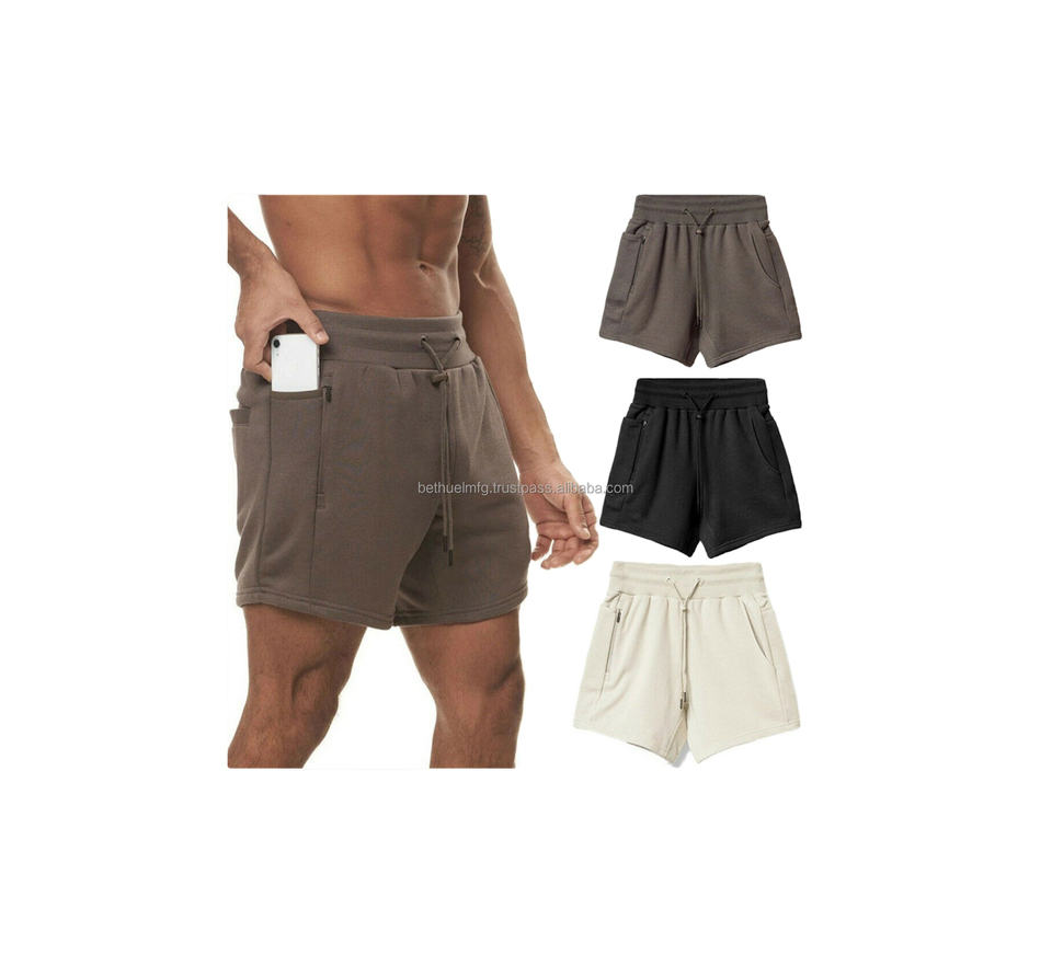 กางเกงขาสั้นออกกำลังกายผู้ชายสไตล์ไฮสตรีท ไซส์ใหญ่ ผ้าฝ้ายระบายอากาศ ใส่สบาย ลายเรียบ กันลม แห้งเร็ว เอวกลาง