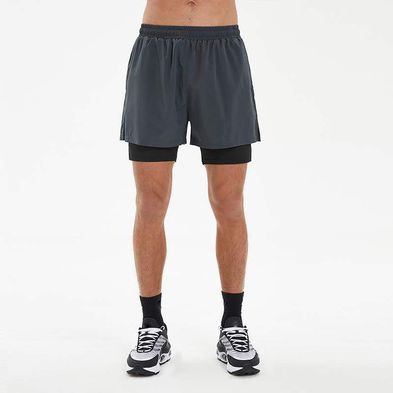 กางเกงขาสั้นผู้ชายแห้งเร็วสองชั้นฤดูร้อนออกกำลังกายยิมฟิตเนสกางเกงขาสั้นระบายอากาศแบบ2-in-1สไตล์ไฮสตรีท