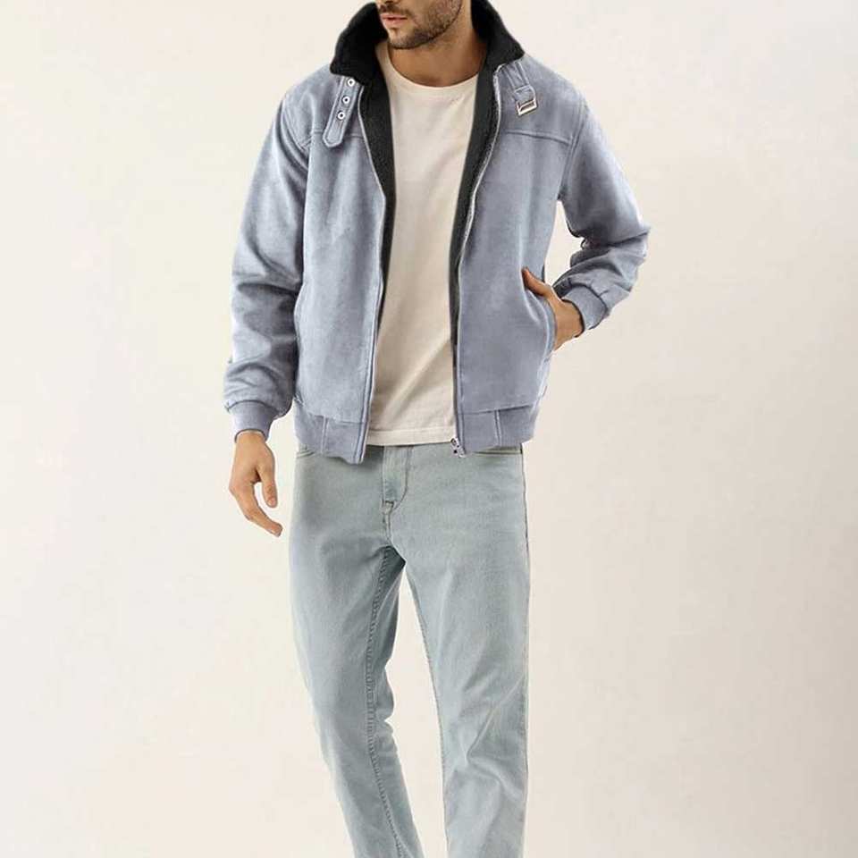 แจ็กเก็ตหนังนิ่มสไตล์สตรีทสำหรับผู้ชายคอตั้งจัดส่งรวดเร็วเสื้อผ้าซิปรูดสำหรับฤดูหนาว