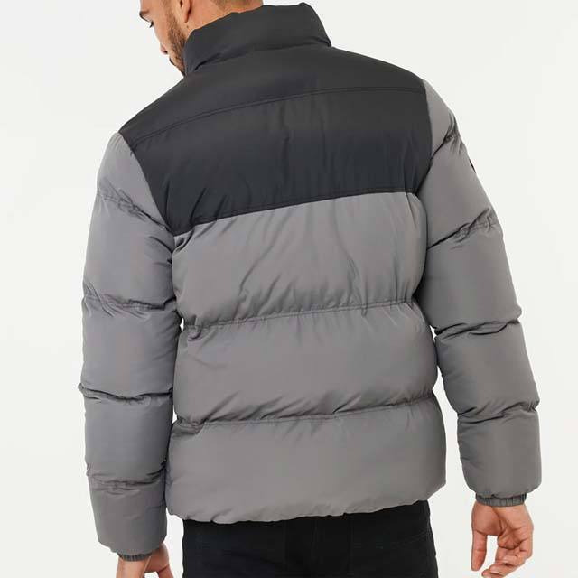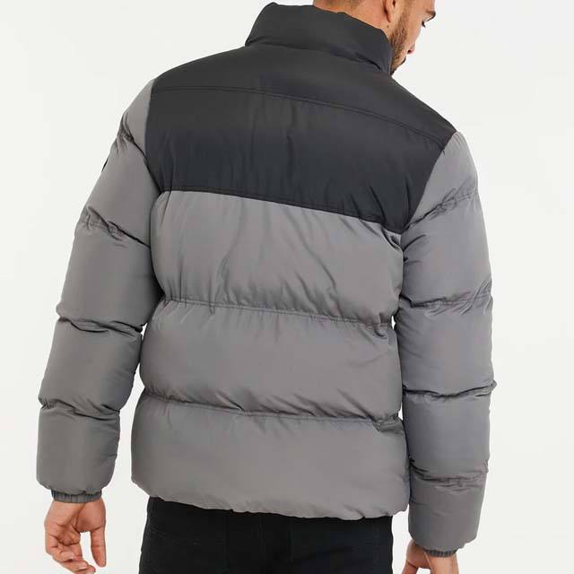 แจ็กเก็ตทรงพองกันน้ำทำจากโพลีเอสเตอร์สีตัดกันสองโทนสไตล์ไฮสตรีทสำหรับผู้ชายใส่ในฤดูหนาวพร้อมซิปปิด