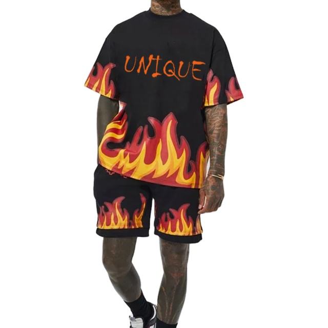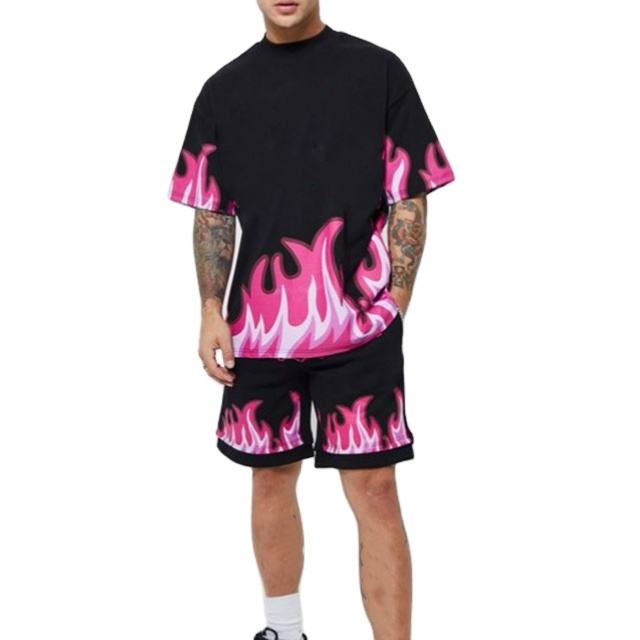 ชุดเสื้อยืดกางเกงขาสั้นสองชิ้นสไตล์สตรีทสำหรับผู้ชายชุดผ้าฝ้ายเนื้อละเอียด100% 220gsm ลายสีพื้นเอวยางยืดแห้งเร็ว