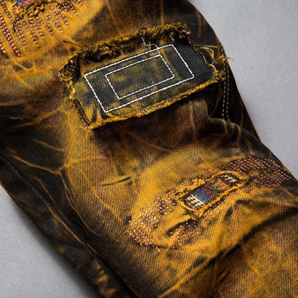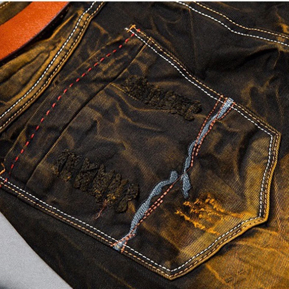 กางเกงยีนส์ผู้ชายสไตล์ไฮสตรีท ดีไซน์ใหม่ คุณภาพสูง ทรงตรง สไตล์ลำลอง เหมาะสำหรับงานปาร์ตี้