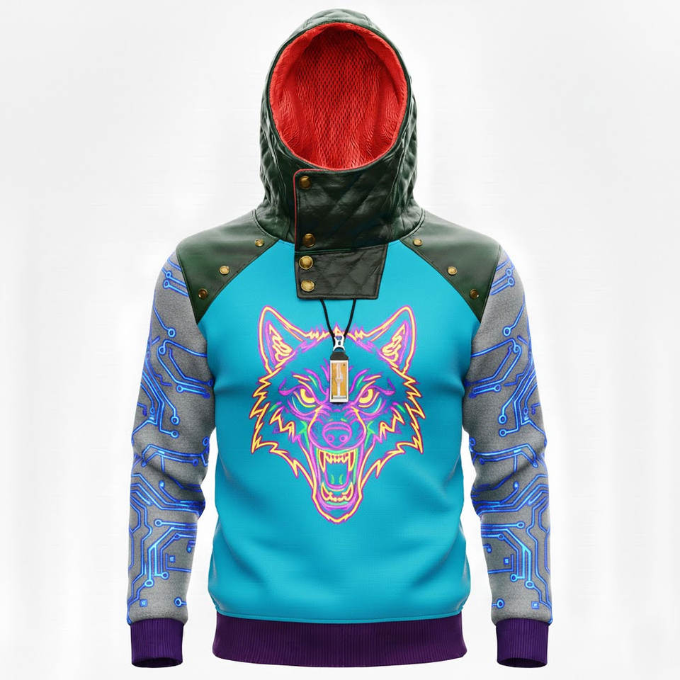 เสื้อฮู้ดดี้กีฬาผู้ชายลายวงจรอิเล็กทรอนิกส์สีนีออนพิมพ์ลายดิจิตอลแบบซับลิเมชั่นสำหรับฤดูหนาว