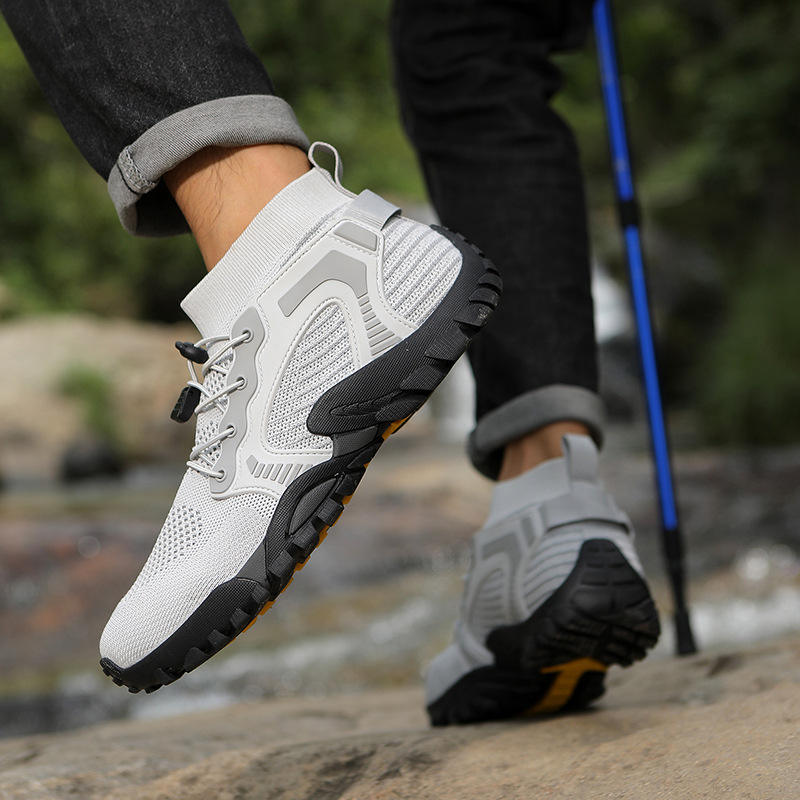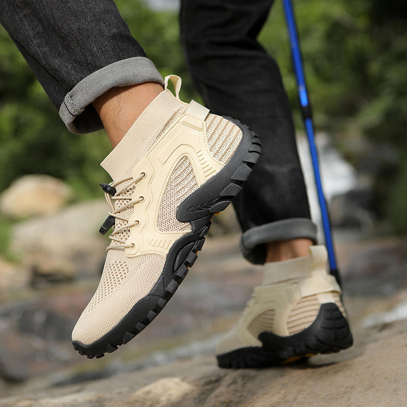รองเท้าผ้าใบหุ้มข้อสูงสำหรับผู้ชาย ทนทาน เหมาะกับกิจกรรมกลางแจ้ง พื้นรองเท้าทำจากยาง/อีวีเอ ใช้ได้ทุกฤดู ลายดอกไม้ เหมาะสำหรับการเดินป่าและปีนเขา