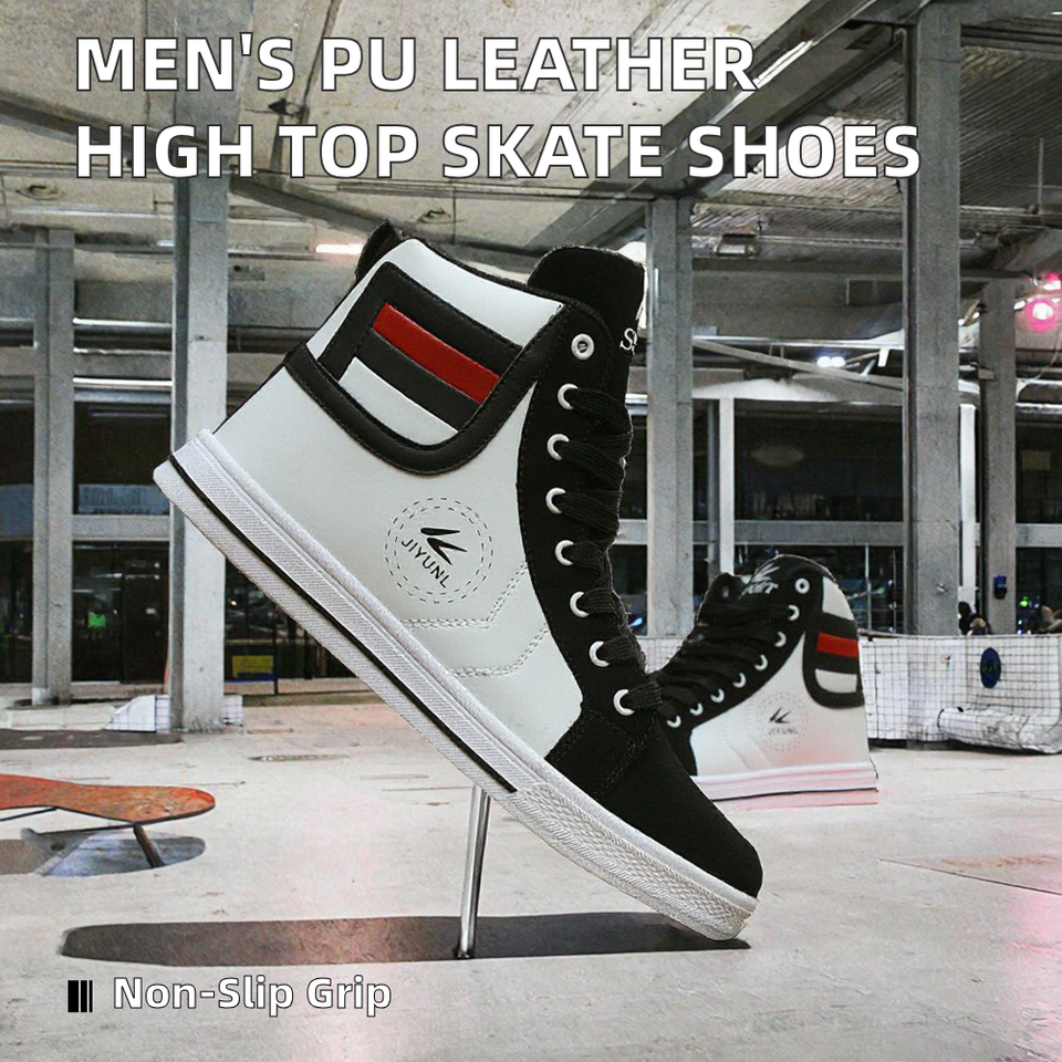 รองเท้าผ้าใบสเก็ตบอร์ดหนัง PU สำหรับผู้ชายรองเท้ากีฬาแบบลำลองมีเชือกผูกเพิ่มความสูงกันลื่นขนาด39-48สำหรับฤดูร้อน