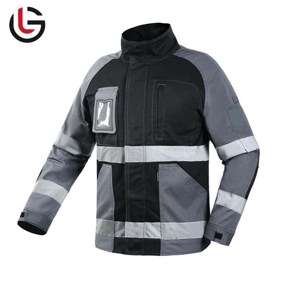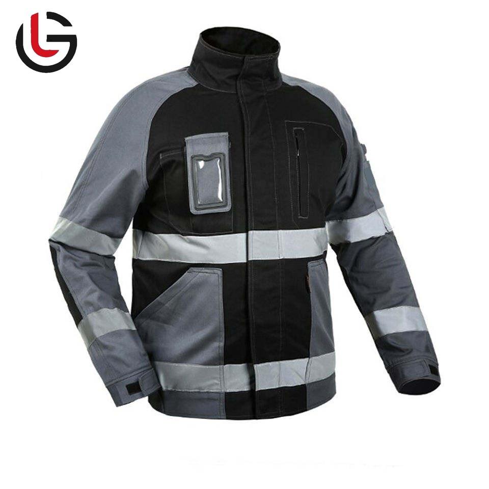 แจ็กเก็ตความปลอดภัยสะท้อนแสงทรงสูงของผู้ชายแจ็คเก็ตทำงานแบบมีซิปมีกระเป๋าชุดทำงานแบบคลาสสิกที่ทนทาน