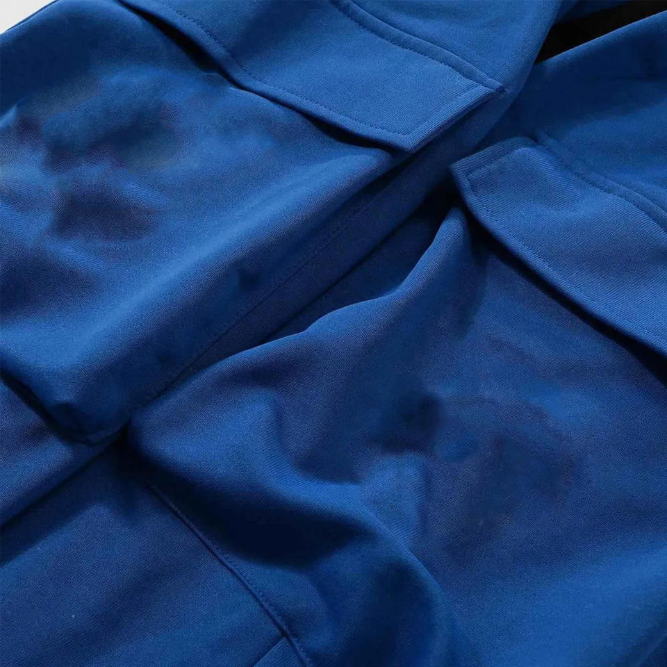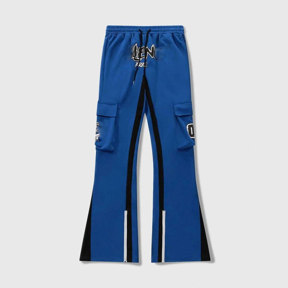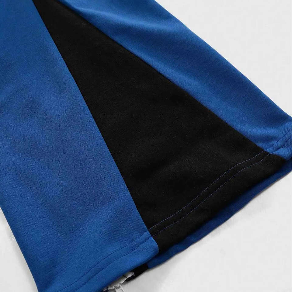 กางเกงวอร์มเอวสูงผู้ชายแบบสั่งทำพิเศษ แต่งผ้าต่อกันเป็นชั้นๆ ทรงขาบาน ผ้าเทอร์รี่ สไตล์สตรีทแวร์ เอวยางยืด สีตัดกันเป็นชั้นๆ