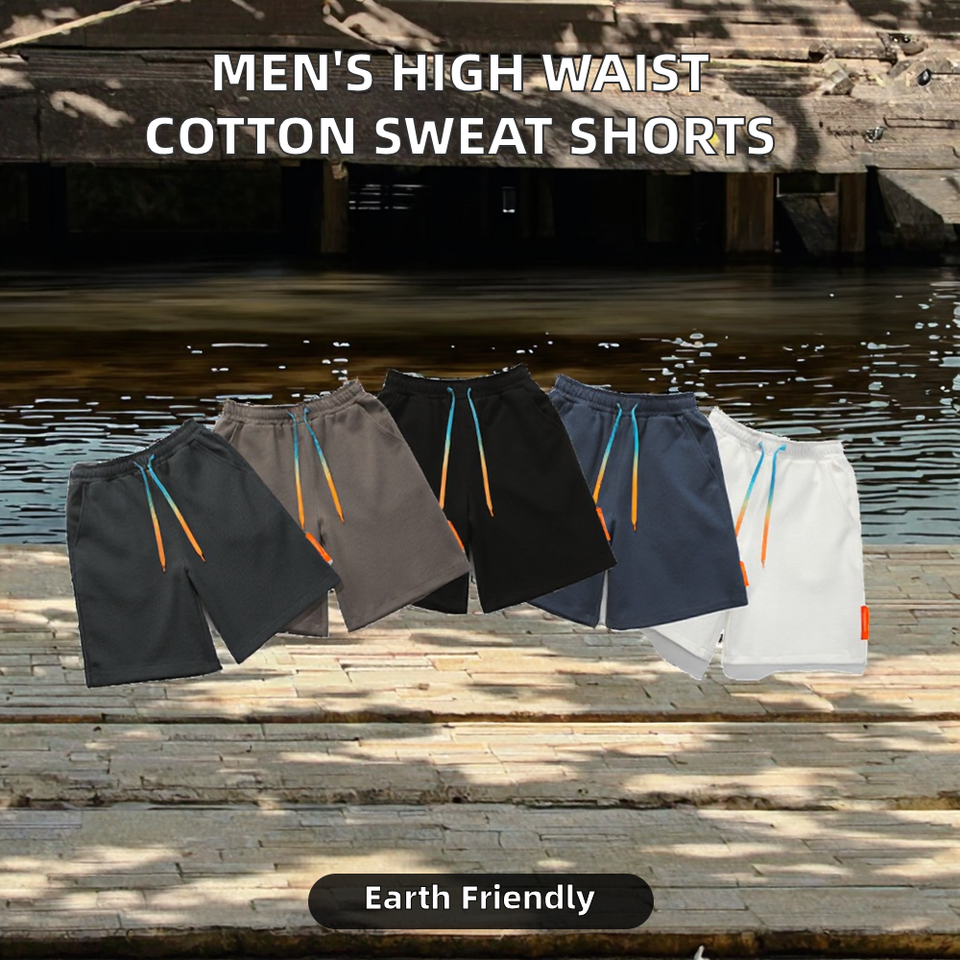 กางเกงขาสั้นผู้ชายเอวสูงผูกเชือก ผ้าฝ้ายเนื้อแน่น มีกระเป๋า บริการ OEM ปรับแต่งได้ สไตล์ลำลอง ใส่สบาย เหมาะสำหรับเล่นกีฬา วิ่ง และออกกำลังกาย