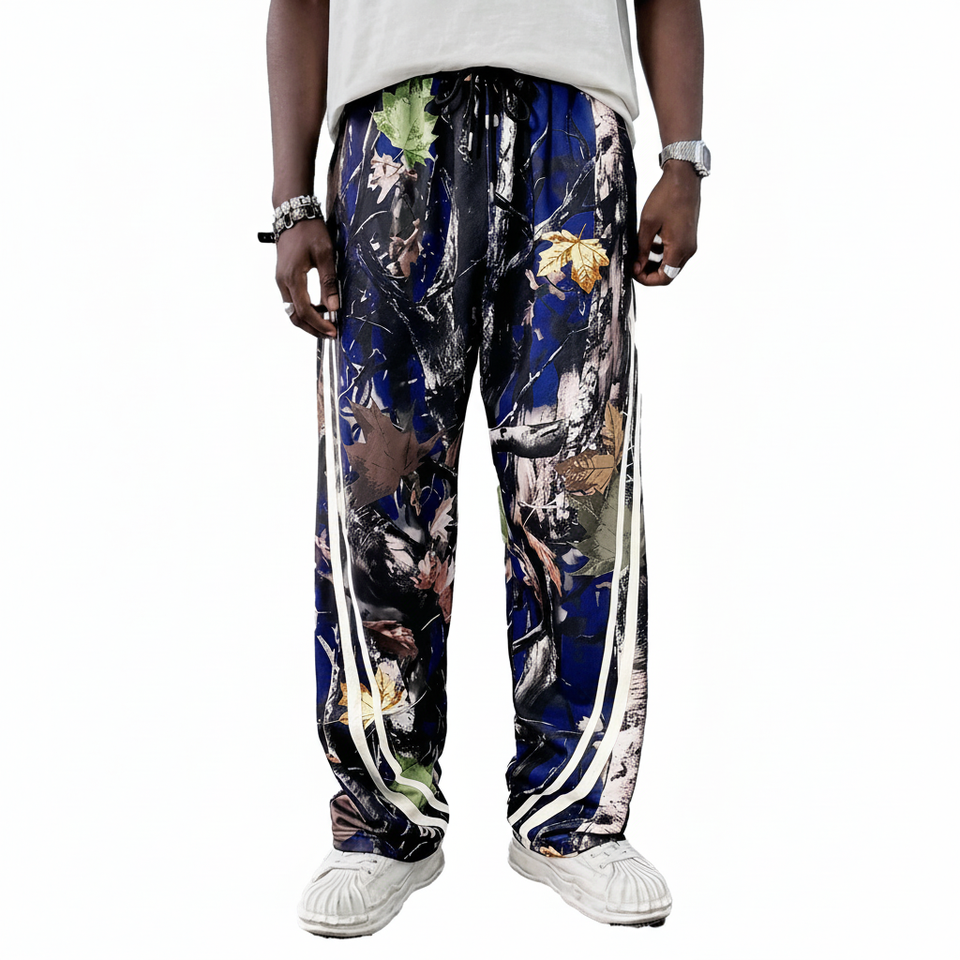 กางเกงวอร์มผ้าคอตตอนน้ำหนักเบากันลมสำหรับผู้ชายทรงตรงทรงหลวมลายพรางมีเชือกรูดสีพื้นฮิปฮอป