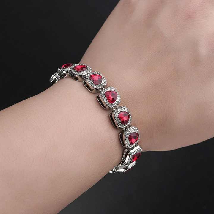 สร้อยข้อมือฮิปฮอปแฟชั่นผู้ชาย ประดับคริสตัลหรูหรา หินทับทิมสีแดง น้ำหนักเบา ผลิตจากโลหะผสม รับดรอปชิป ผลิตโดยตรงจากโรงงาน