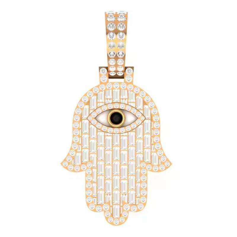 สร้อยคอเงินแท้ชุบทองคำขาวประดับดาวและฝ่ามือประดับเพชรโมอิสซาไนต์เต็มวง สไตล์ใหม่สำหรับเด็ก เหมาะเป็นของขวัญในงานปาร์ตี้