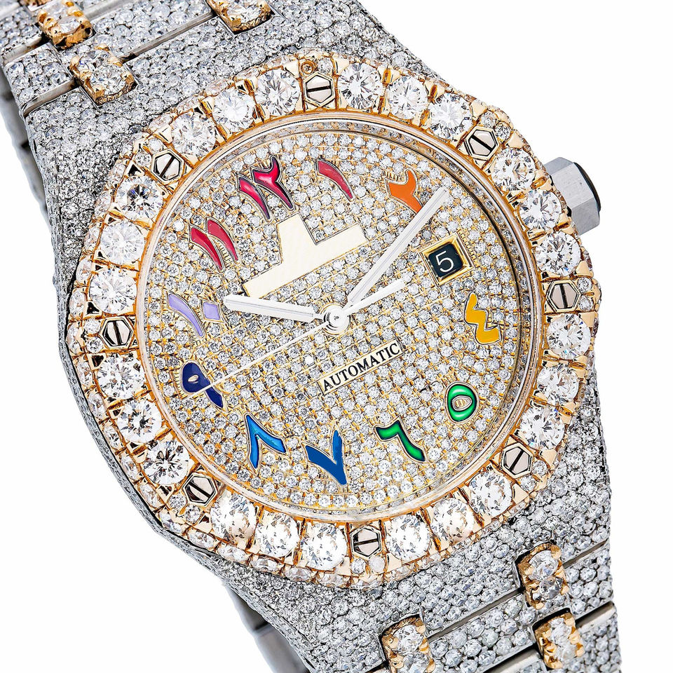 Men's Hip Hop Luxury Quartz Movement Iced Out VVS Moissanite Stainless Steel Watch with Glass Dial Limited Edition Fashion