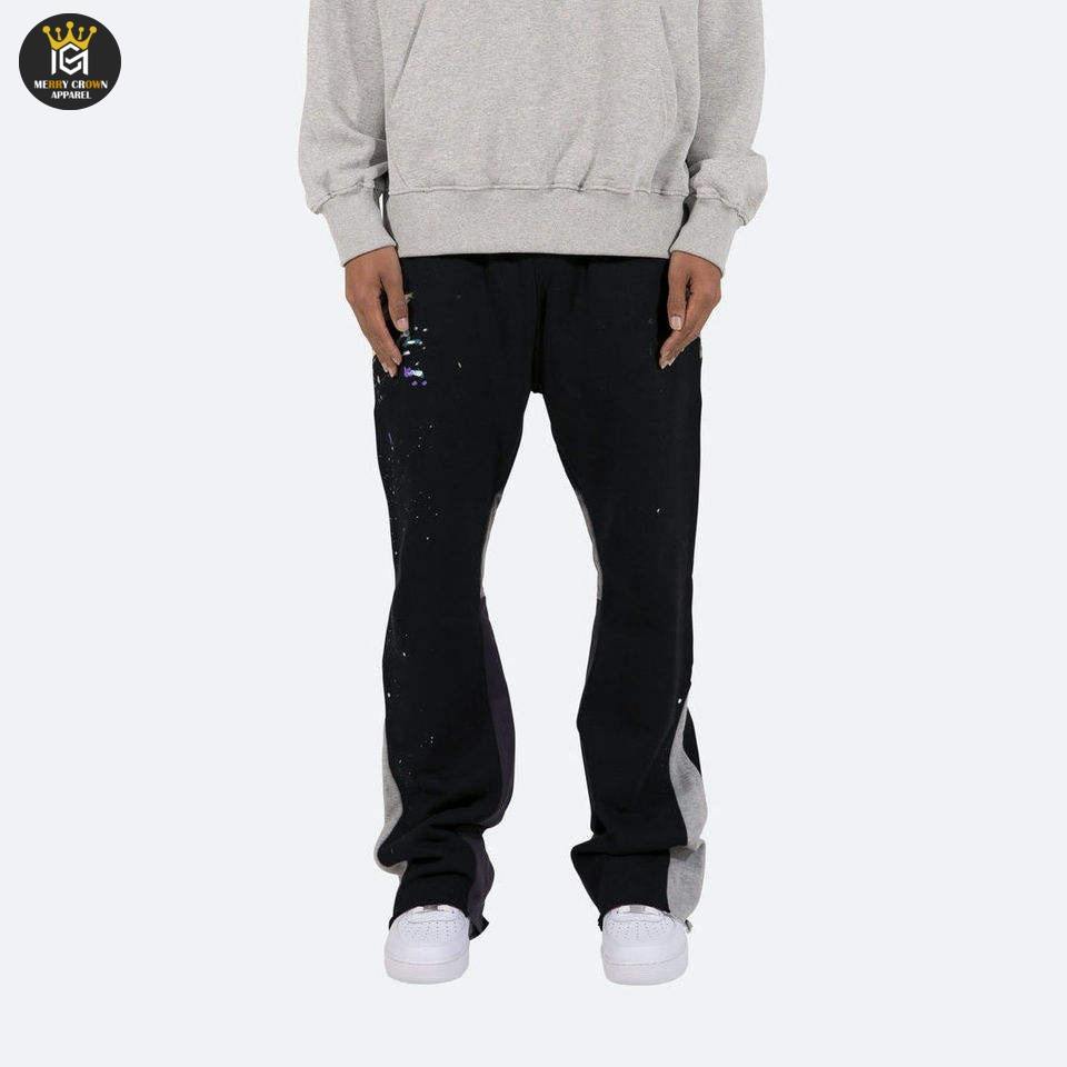 กางเกงขาบานฮิปฮอปกีฬาของผู้ชายกางเกงผ้านุ่มสีพื้นผสมกางเกงวอร์มใส่สบาย