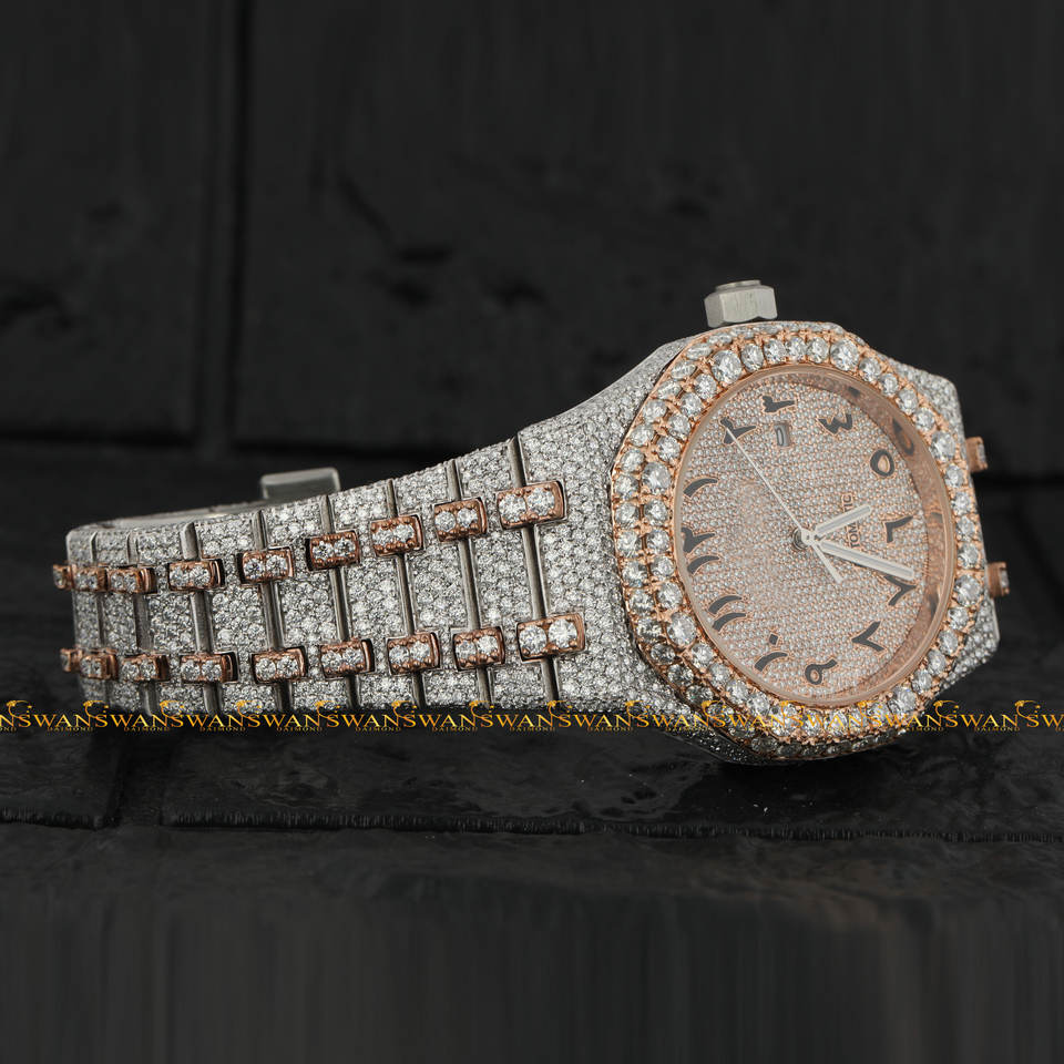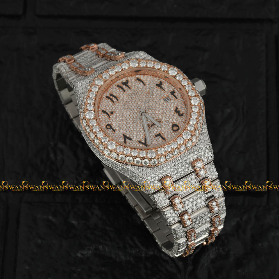 นาฬิกาสเตนเลสสตีลสไตล์ฮิปฮอปของผู้ชายประดับเพชรเพชรโมอิสใส VVS พร้อมด้วยหน้าต่างหน้าปัดกระจก