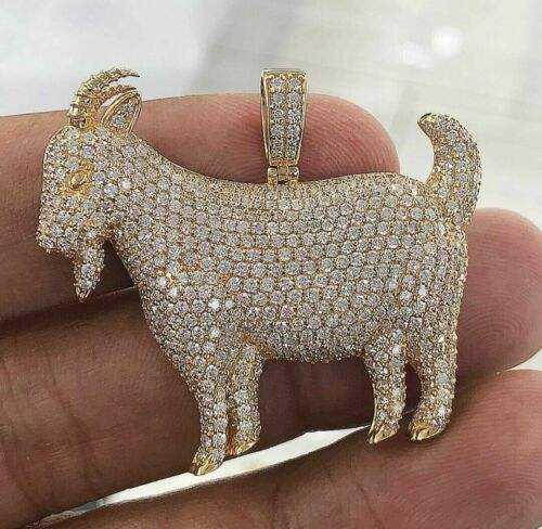 จี้รูปสัตว์สไตล์ฮิปฮอปสำหรับผู้ชาย ประดับเพชรโมอิสซาไนต์ทรงบริลเลียนต์คัต VVS ดีไซน์คลาสสิกแบบ Iced ชุบทอง 14K งานสั่งทำพิเศษรูปแกะ
