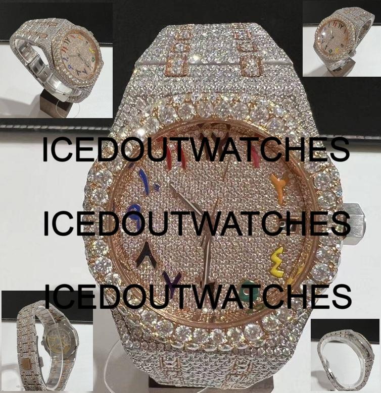 นาฬิกาข้อมือผู้ชายสไตล์ฮิปฮอป ตัวเรือนสแตนเลสประดับเพชรโมอิสซาไนต์ พร้อมสายแบบติดข้อมือ