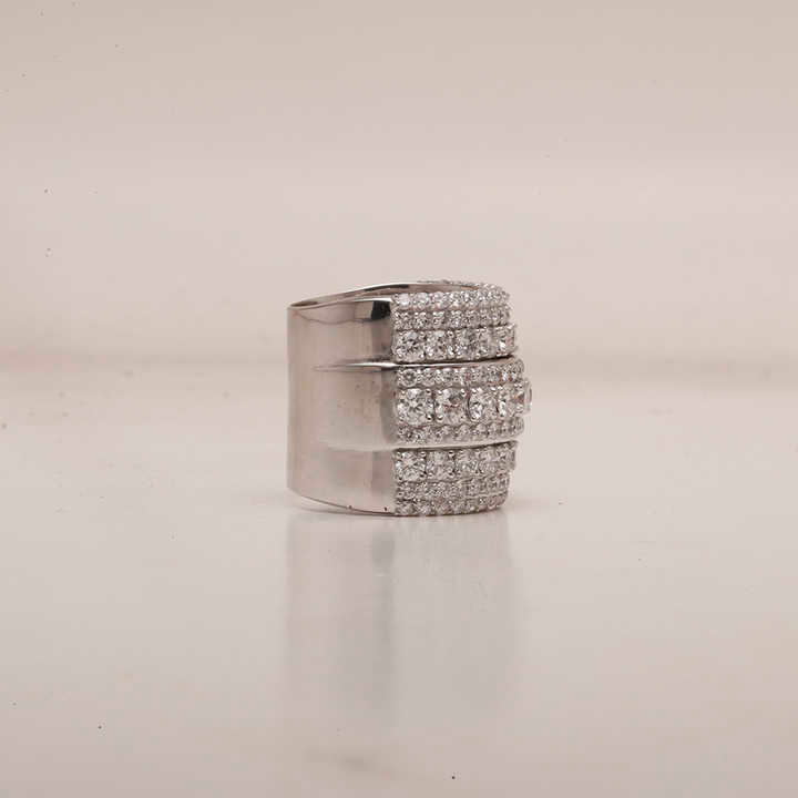 แหวนฮิปฮอปผู้ชายแบบสามแถว ประดับคริสตัลรูปมงกุฎและกากเพชร ของขวัญวันเกิด สไตล์ไอซ์ซี่ เพชรเลี้ยงในห้องปฏิบัติการ มอยส์ซาไนต์ มุก IGI