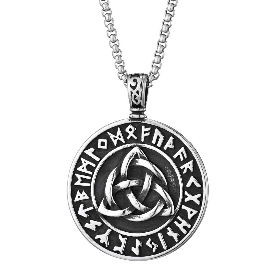 สร้อยคอจี้ไทเทเนียมสไตล์ฮิปฮอปสำหรับผู้ชาย พร้อมสัญลักษณ์ไวกิ้ง ลายเซลติก น็อตไตรเกตร้า จี้ดิสก์ใหม่ เครื่องประดับสแตนเลส