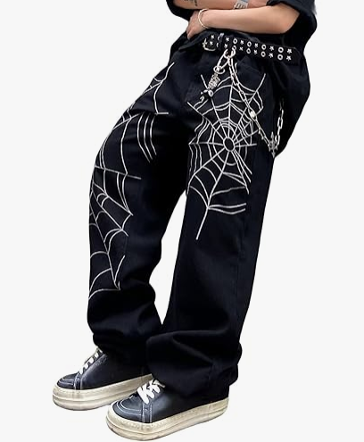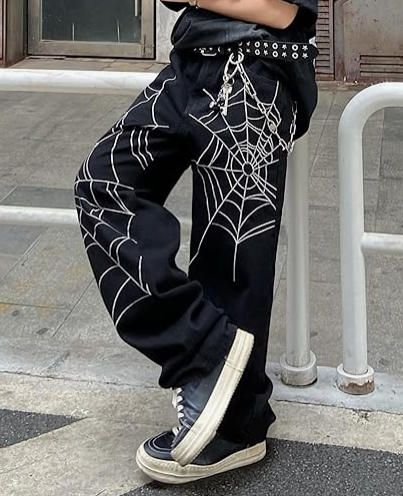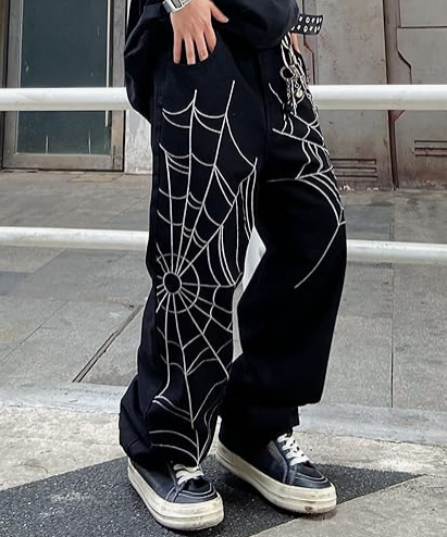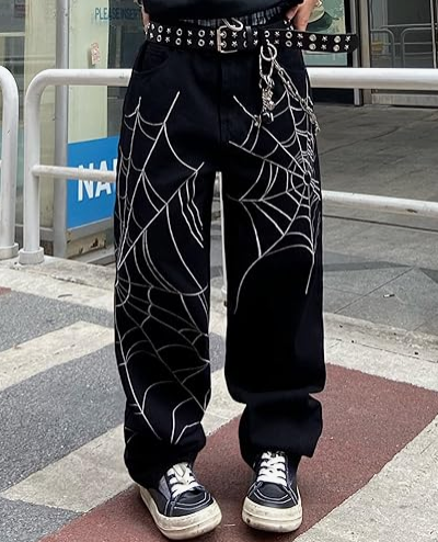 กางเกงยีนส์ทรงหลวมสไตล์ฮิปฮอปเอวสูงผ้าฝ้าย 100% ระบายอากาศได้ดี ใส่ได้ทั้งฤดูร้อนและฤดูหนาว สีดำ