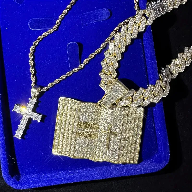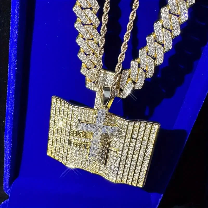 สร้อยคอจี้แบบคิวบา สไตล์ฮิปฮอปสตรีทสำหรับผู้ชาย ประดับเพชรโมอิสซาไนต์เต็มเส้น ดีไซน์แบบ Iced Out ชุบทอง จี้รูปบัตรเครดิตสุดเทรนดี้