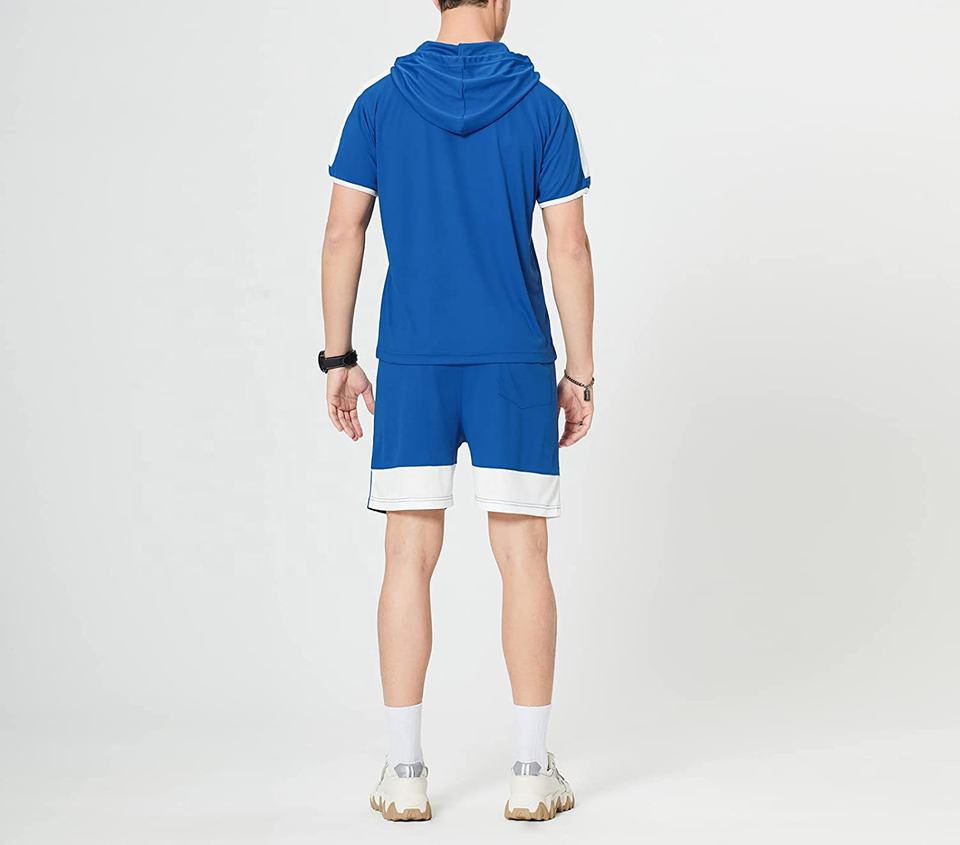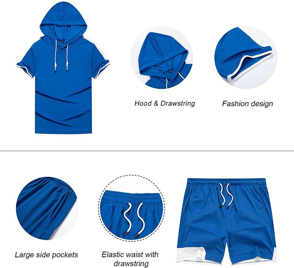 ชุดกีฬามีฮู้ดแขนสั้นสำหรับผู้ชาย,ชุดวิ่งจ็อกกิ้งและนักกีฬาสำหรับฤดูร้อน