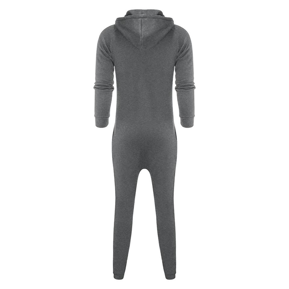 จั๊มสูทมีฮู้ดสำหรับผู้ชาย, จั๊มสูทผ้าฟลีซผ้าฝ้าย100% 2024ลำลองทรงหลวมไซส์ใหญ่ชุดออกกำลังกายเอวยางยืดหนึ่งชิ้นสำหรับฤดูหนาว