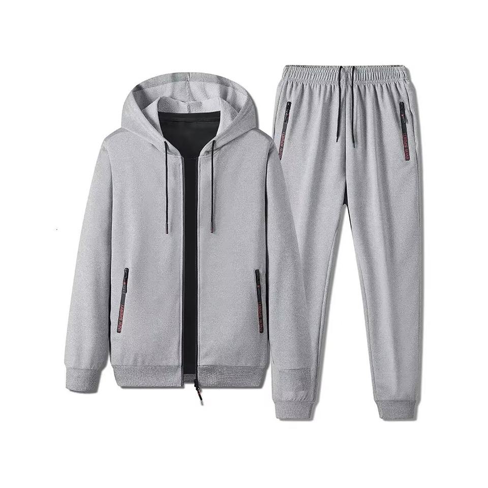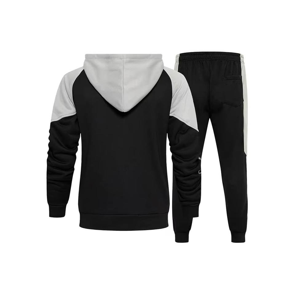 ชุดเซ็ตเสื้อฮู้ดและกางเกงสตรีทแวร์สะท้อนแสงแบบสองชิ้นสำหรับผู้ชาย รับสกรีนโลโก้ ลายเรียบ