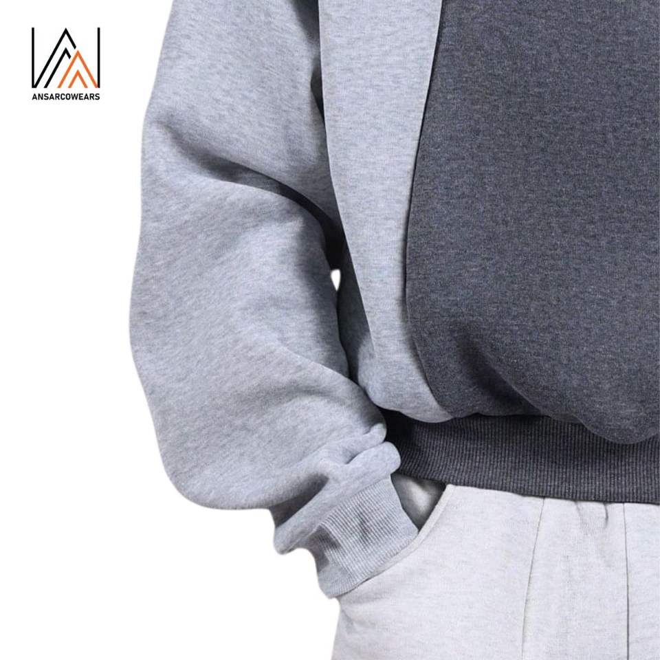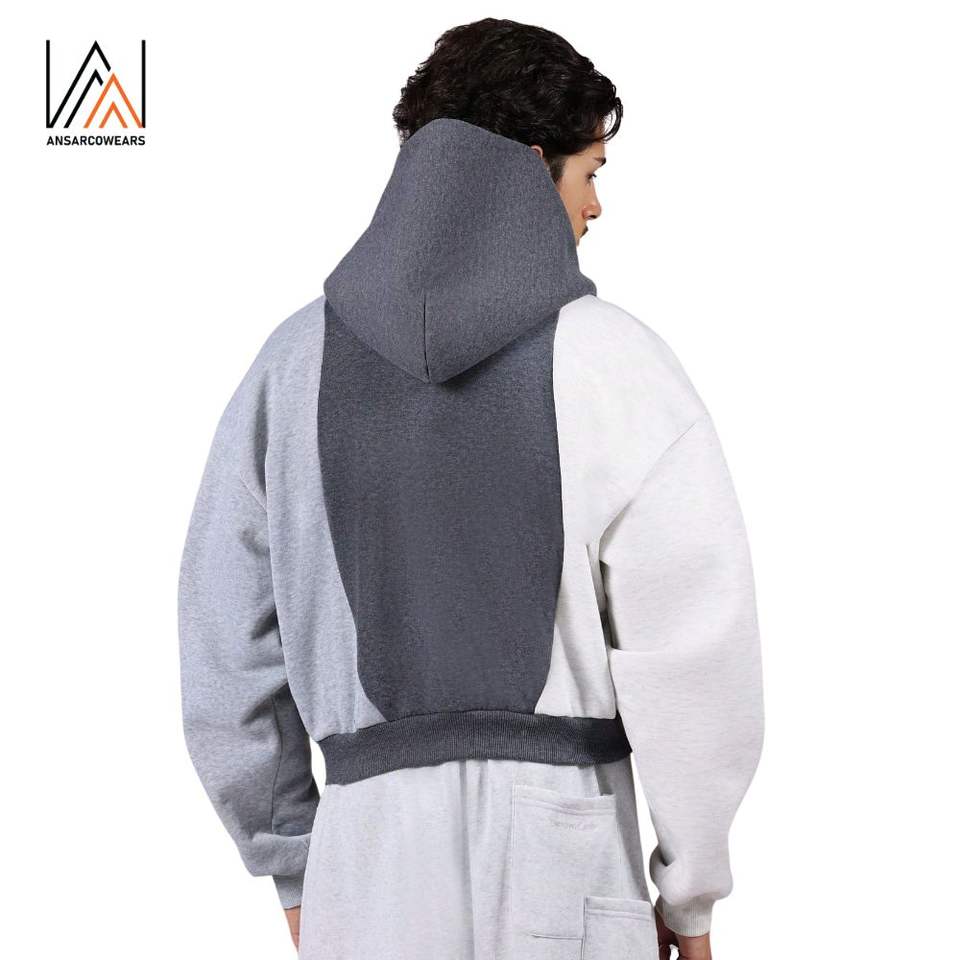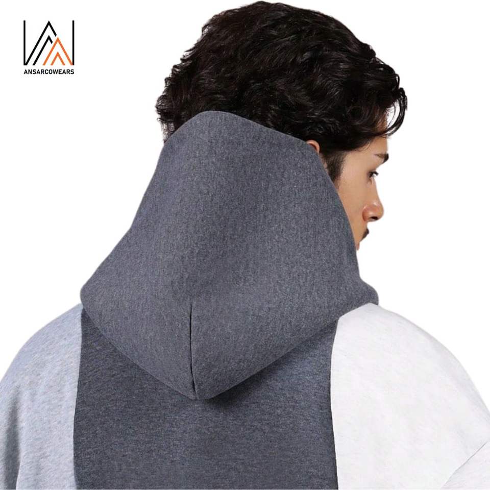 เสื้อฮู้ดดี้ผู้ชายแบบสั่งทำพิเศษสำหรับฤดูหนาว ผ้าฝ้าย 100% ทรงโอเวอร์ไซส์ บุซับใน ปักลาย ตกแต่งด้วยแผ่นผ้าต่อกัน ดีไซน์สีตัดกัน