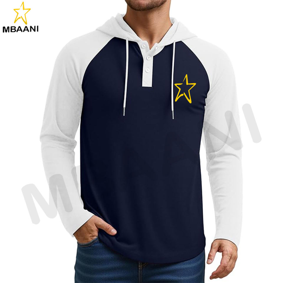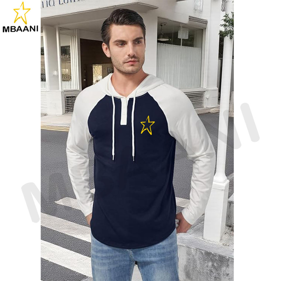 เสื้อฮู้ดผู้ชายแขนยาวลำลองสไตล์สปอร์ตแฟชั่นแบบสวม มีฮู้ด คอเสื้อตัดสี พร้อมเชือกผูก