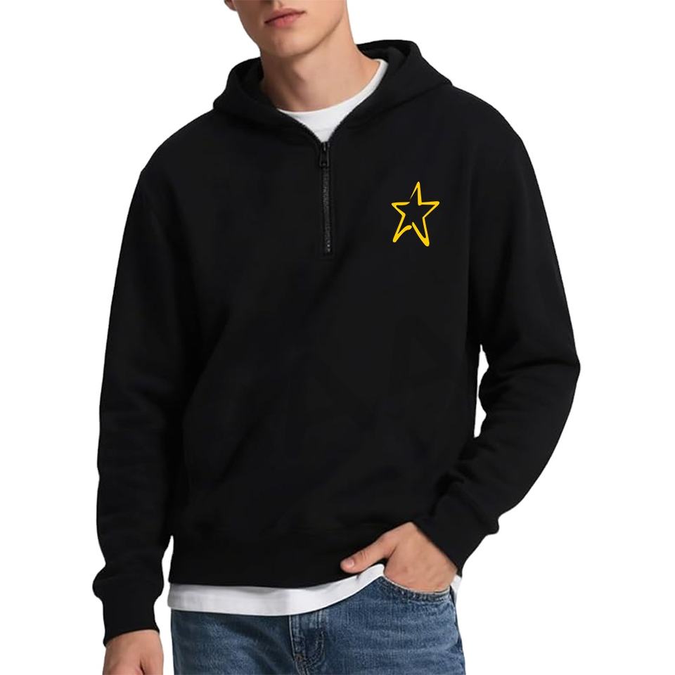 เสื้อฮู้ดผู้ชายแบบซิป ¼ แขนยาว ผ้าฟลีซ สวมใส่สบาย เหมาะสำหรับออกกำลังกาย