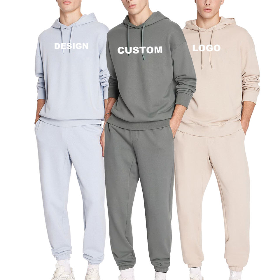 ชุดเซ็ตเสื้อฮู้ดดี้และกางเกงวอร์มผู้ชาย/ผู้หญิง ผ้าฝ้าย 100% เนื้อหนา พิมพ์ลาย คุณภาพสูง แห้งเร็ว ระบายอากาศได้ดี รับสกรีนโลโก้
