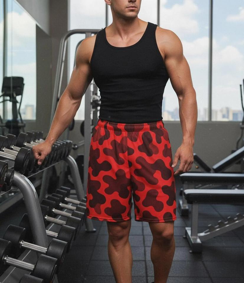 กางเกงขาสั้นผู้ชายแบบตาข่าย ทรงฮิต เอวยางยืดสูง แห้งเร็ว ระบายอากาศได้ดี ผ้าฝ้าย/โพลีเอสเตอร์ 220 กรัม ความยาวขาใน 5 นิ้ว รับสั่งทำ