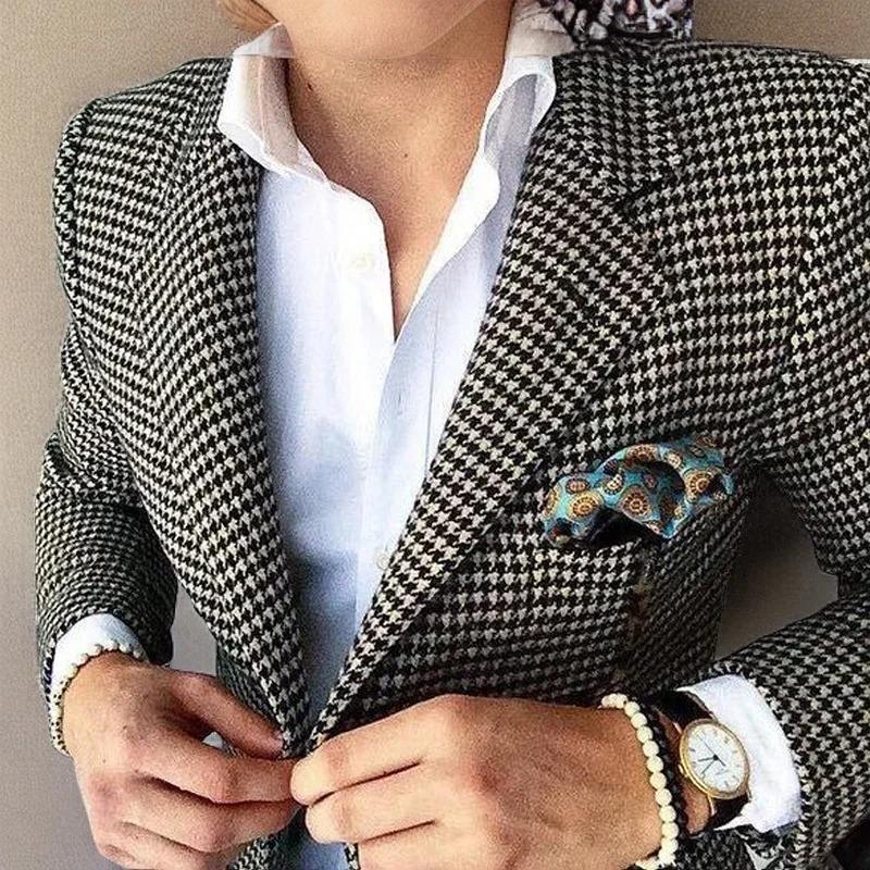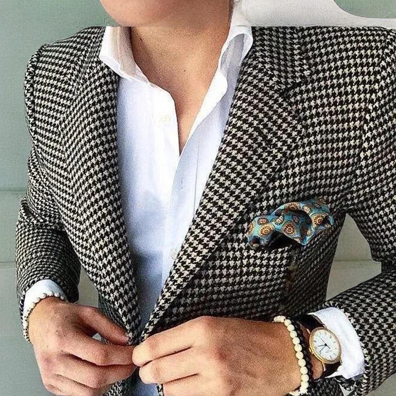 เสื้อสูทผู้ชายลายสก็อตผ้าโพลีเอสเตอร์/คอตตอน ปกแหลม สไตล์ลำลอง/ธุรกิจ ไซส์ใหญ่ พร้อมส่ง ไซส์ XS-5XL สำหรับงานแต่งงาน
