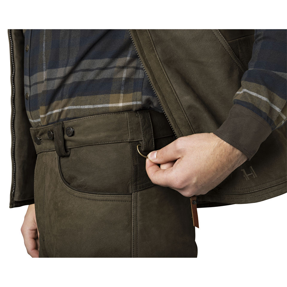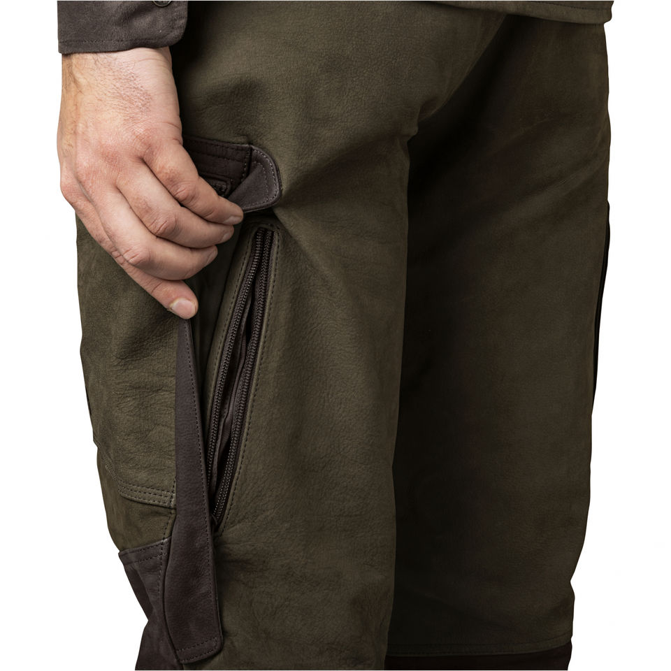 กางเกงล่าสัตว์ของผู้ชายสีคู่100% หนังแท้มีซิปและกระดุมปิดด้านหน้ามีกระเป๋าด้านข้างมีเข็มขัดแบบห่วงด้านในบุด้วยผ้าฝ้าย