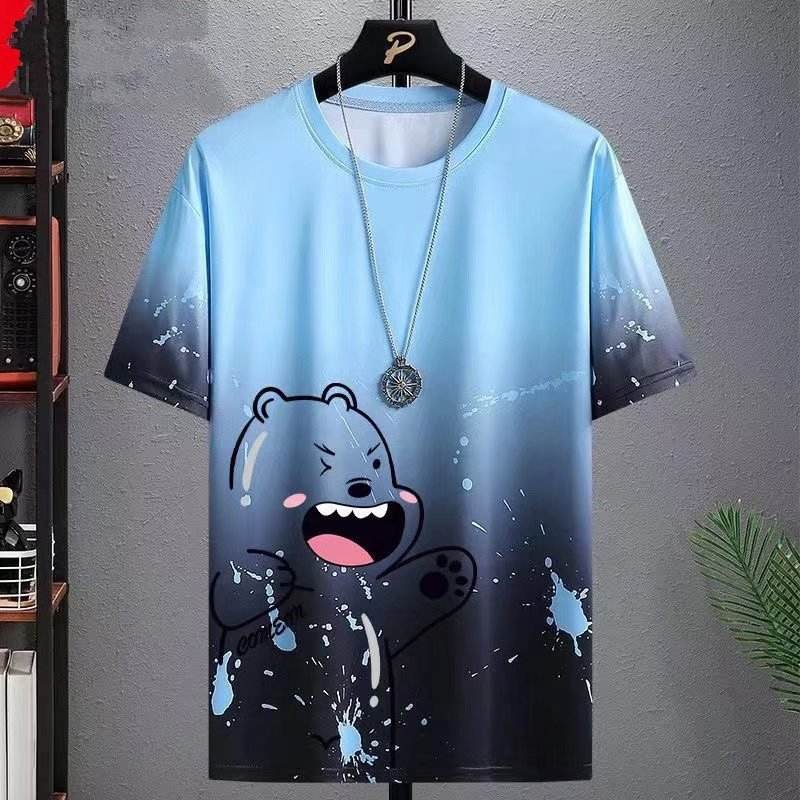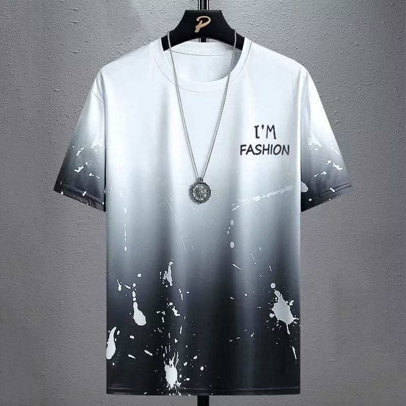 เสื้อยืดผู้ชายผ้าไหมน้ำแข็งแห้งเร็วแขนสั้นทรงหลวมสไตล์สปอร์ตลำลองมีลวดลายฤดูร้อนบางเฉียบอินเทรนด์